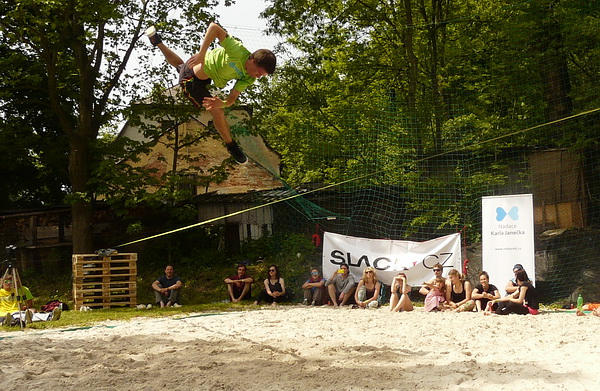 Závod byl součástí tradičního slackline festivalu Garden Party v Sobotce, což umožnilo napnutí soutěžní lajny nad beach volejbalovým hřištěm. Vrstva jemného písku na místo obvyklých žíněnek, spolu s nádherným slunečným počasím a pohodová muzika přispěly ke skvělé atmosféře a vybičovaly borce k super výkonům až na samou hranici jejich možností.